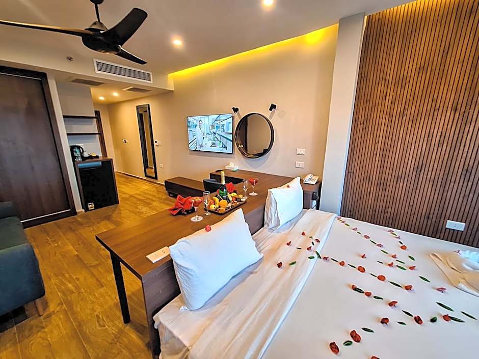 Zu den besonderen Annehmlichkeiten zählen Wasserpark (kostenlos), privater Strandbereich (kostenlos), Außenpool (kostenlos) und ein kinderfreundliches Angebot mit kostenlosem Kinderclub und kostenlosem Kinderbecken. Die gastronomischen Einrichtungen umfassen ein Restaurant und eine Bar, während praktische Vorzüge kostenloses WLAN, privates Parken (kostenlos), Zimmerservice und Klimaanlage abdecken. Fitnessbegeisterte können ein kostenloses Fitnesscenter nutzen, und die Anlage bietet Balkon, Terrasse, Seeblick oder Meerblick sowie Aufzüge für bequemen Zugang. Schnorcheln ist gegen Aufpreis verfügbar, und Wellnessleistungen – Spa, Whirlpool, Sauna (gegen Aufpreis), Massage (gegen Aufpreis) – werden angeboten; außerdem gibt es einen Flughafentransfer (gegen Aufpreis) und Tagungs-/Banketteinrichtungen gegen Gebühr.